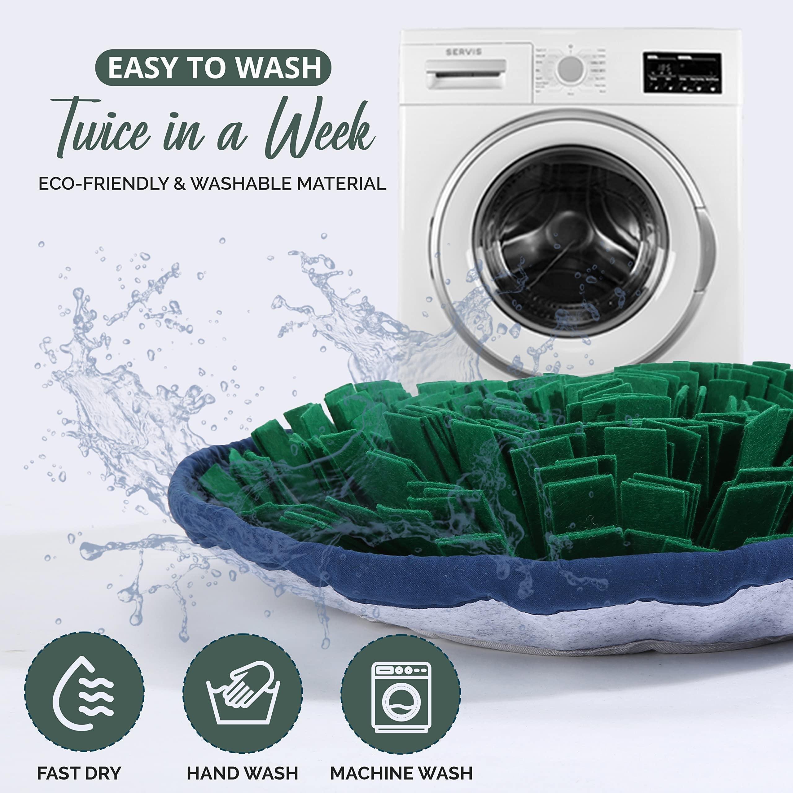 4.ECO-FRIENDLY & WASHABLE MATERIAL This dog treat puzzle is made of eco-friendly sustainable anti pilling upgraded polar fleece material. You can wash it in machine or wash by hand. This snuffle mat for dogs small is durable and will be a good addition in your dog training toys.