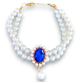 Pearl Cat Collar 2 Row Pearls for Cats Dogs Rhinestone Necklaces M Size Collar Accessories Diamond Pearls Necklace Jewelry for Small Dogs Puppy Bling