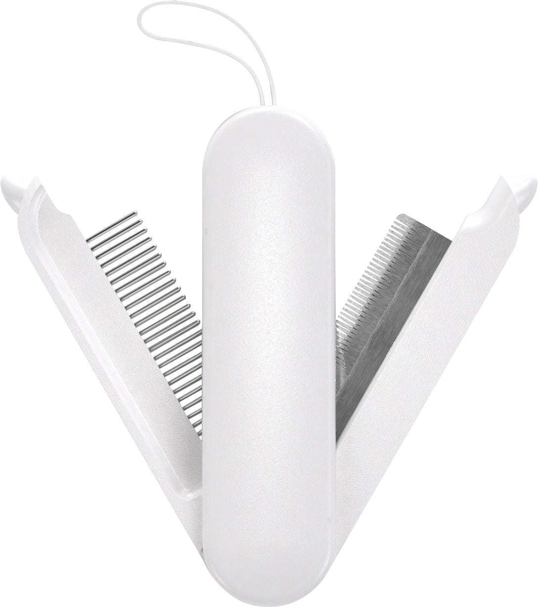 1.This 2-in-1 Stainless Steel Travel Comb and Deshedder swivels open on both sides like a Pocket Knife